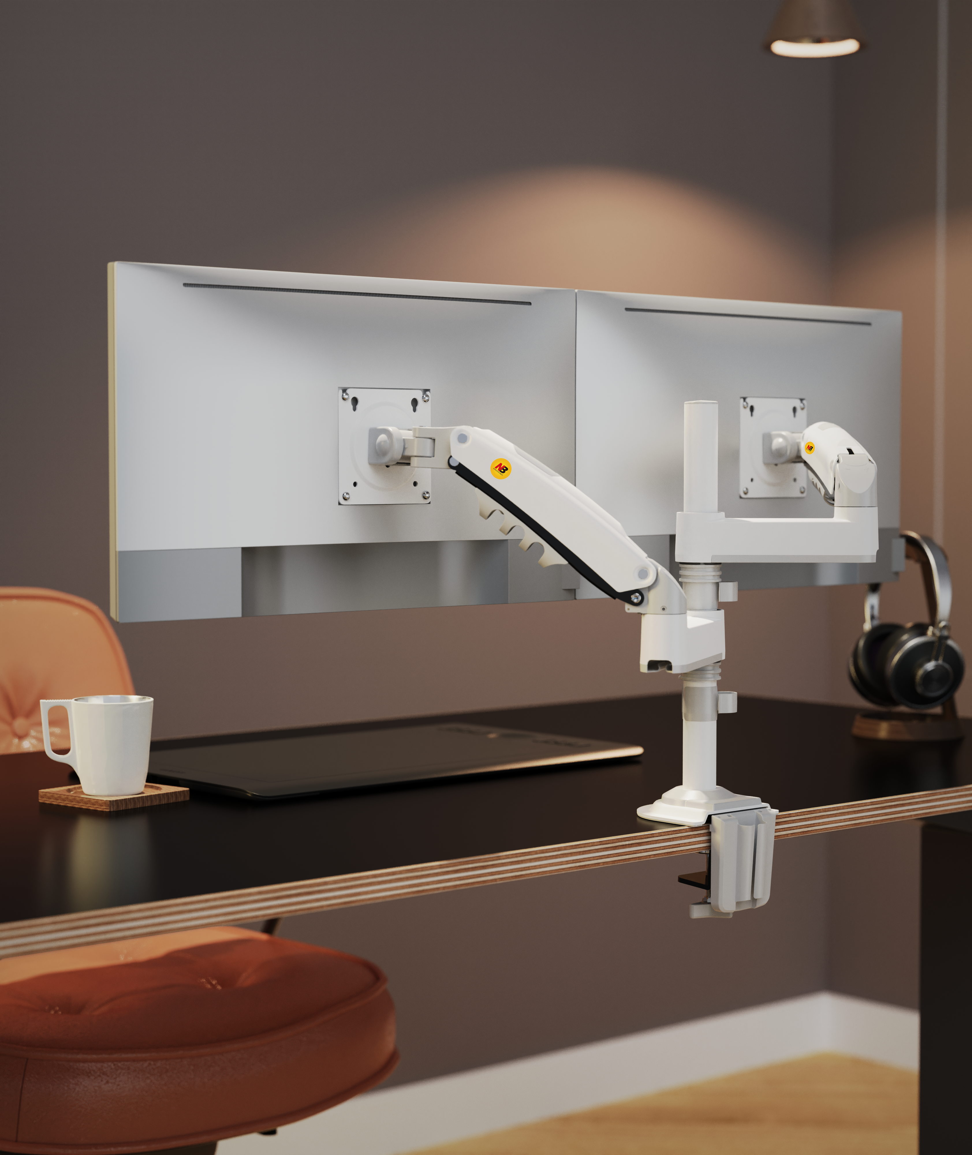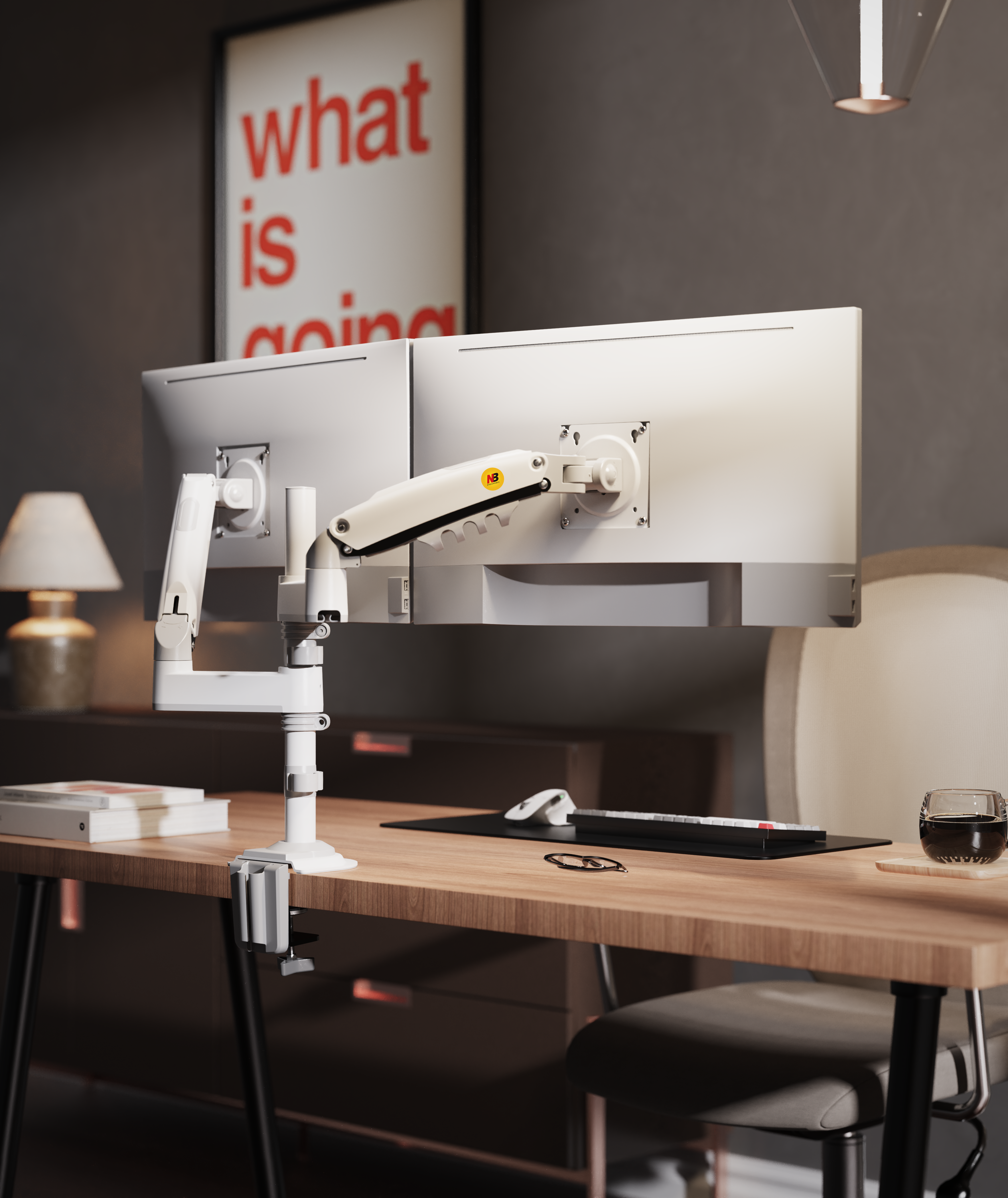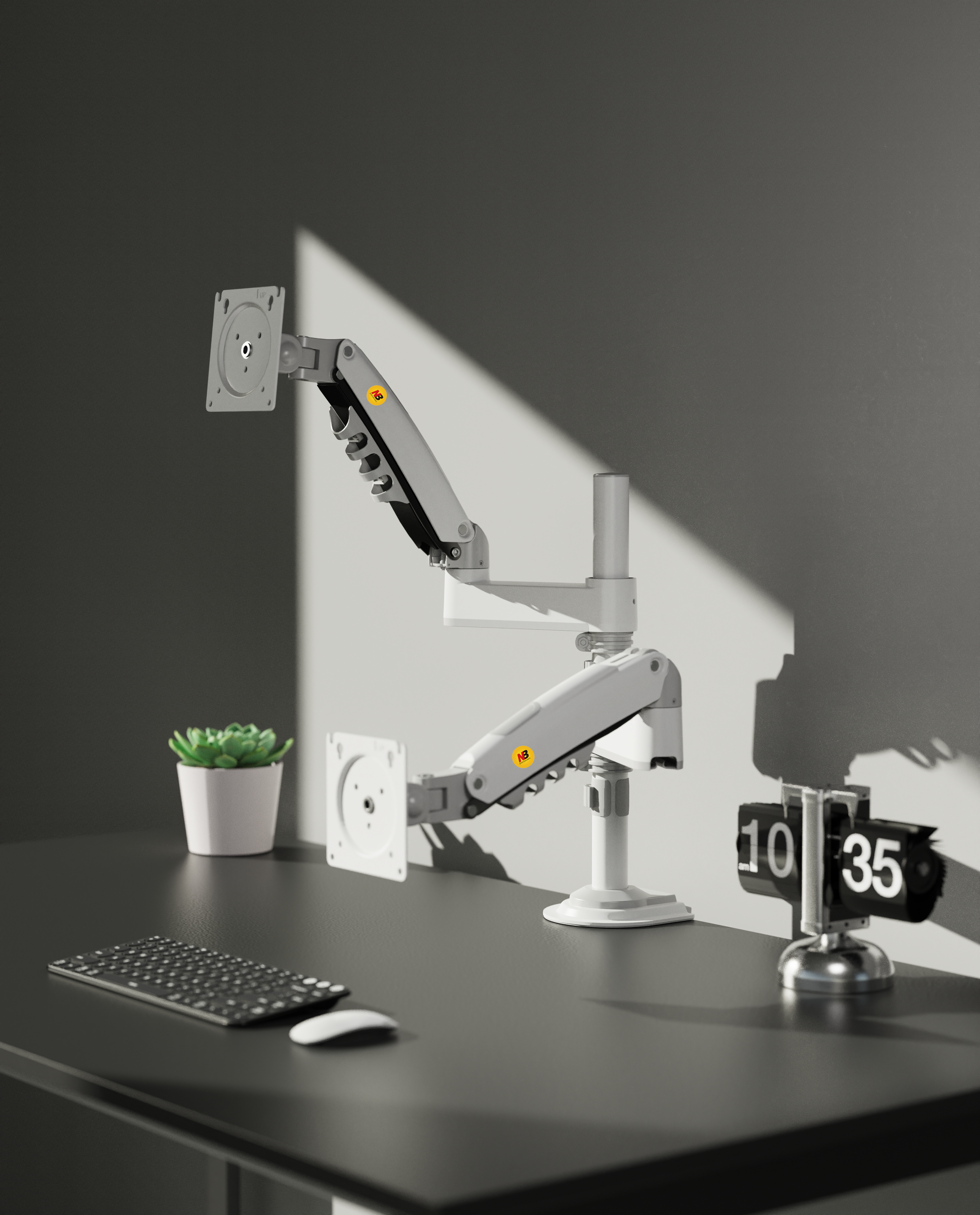 - NB North Bayou H180 Beyaz 17-27 Çift Kol Amortisörlü 2-9 kg Monitör Standı