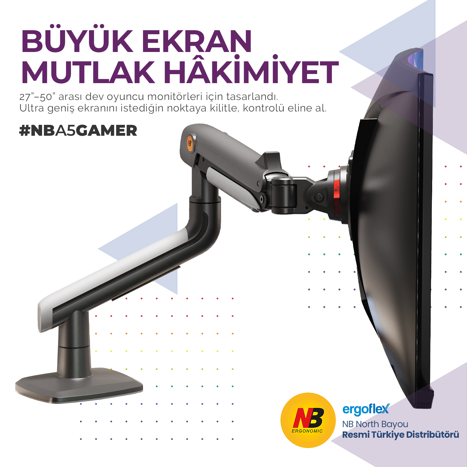 - NB Ergonomic NB A5-Gaming , 27-50inch Profesyonel Oyuncu Monitör Standı