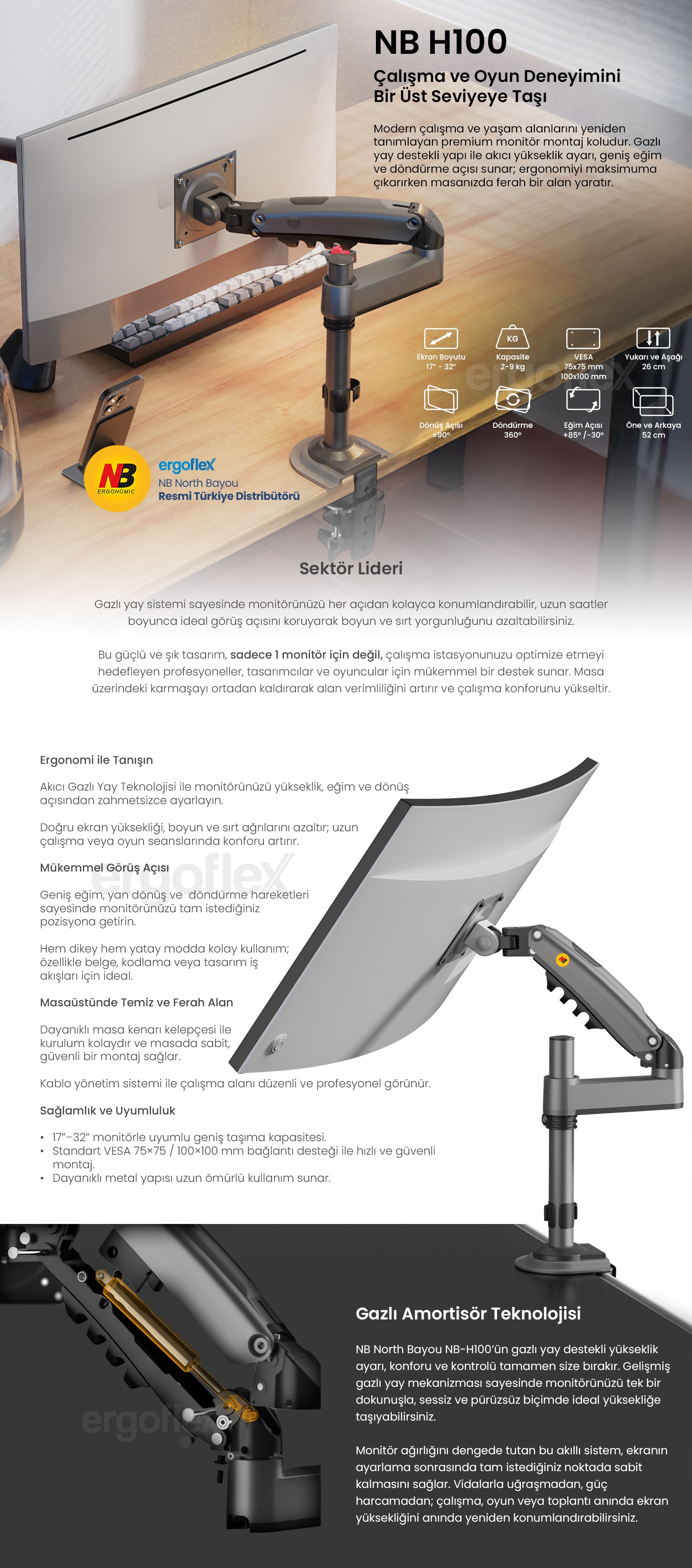 - NB Ergonomic NB H100 17-32 inch Monitör Standı 2026 Versiyon